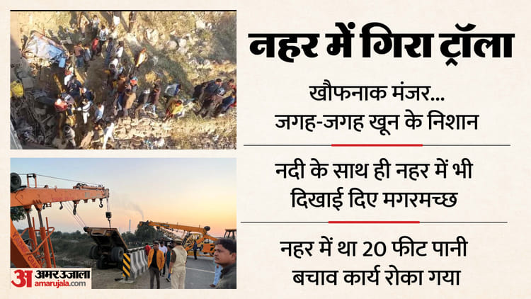 घटना स्थल का मंजर खौफनाक था। चारों ओर बिखरा खून हादसे की भयावहता की गवाही दे रहा था। तीस फीट गहराई में गिरने से भारी भरकम ट्राला दो टुकड़ों में बंट गया था। ट्राला का एक हिस्सा नहर के तेज बहाव में बहकर करीब सौ मीटर दूर निकल गया जबकि शेष भाग नहर के आसपास बिखर गया।