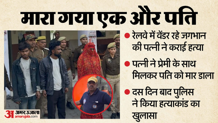 झांसी में रेलवे में वेंडर रहे जगभान कुशवाहा की हत्या उसकी पत्नी किरण कुशवाहा ने अपने प्रेमी शिव कुमार लोधी के साथ मिलकर कराई थी। हत्या के 10 दिन बाद इस सनसनीखेज हत्याकांड का खुलासा करते हुए पुलिस ने पत्नी किरण, प्रेमी शिव कुमार लोधी एवं उसके दोस्त धर्मेंद्र लोधी को गिरफ्तार कर लिया। शिव कुमार की निशानदेही पर हत्या में इस्तेमाल तमंचा समेत कारतूस बरामद कर लिया गया है।