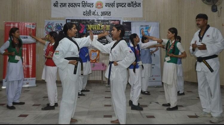 अमर उजाला की ओर से आयोजित अपराजिता का शुभारंभ प्रधानाचार्य कुमुद ग्रोवर और 5 डाॅन ब्लैक बेल्ट धारक अंतरराष्ट्रीय ताइक्वांडो प्रशिक्षक पंकज शर्मा ने किया। कार्यशाला में छात्राओं को वार्मिंग अप एवं तनाव दूर करने के विशेष व्यायाम कराए गए। इसके बाद पंच को मजबूती से हिट करना, सिंगल फेस पंच, फ्रंट चाप, ओपन फ्रंट चाप, साइड ब्लाॅक, अपर ब्लाॅक के टिप्स दिए। उसका अभ्यास भी कराया। ट्रेनर पंकज शर्मा ने चेन स्नेचिंग के दौरान अपराधियों के हौसले पस्त करने की विशेष विधि बताई।