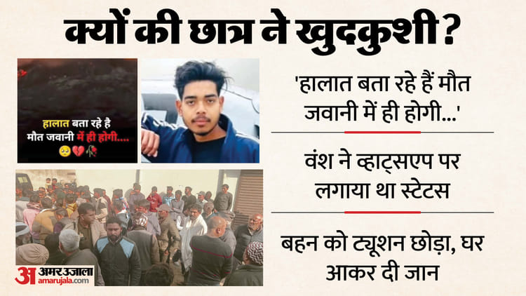 सहारनपुर जिले के छुटमलपुर कस्बे की नई बस्ती में डी-फार्मा के छात्र वंश (20) ने अपने मफलर से फंदा बना पंखे से लटक कर जान दे दी। मरने से पहले छात्र ने हालात बता रहे हैं मौत जवानी में ही होगी का व्हाट्सएप स्टेटस लगाया था। वंश अपने माता-पिता का इकलौता पुत्र था। बताया जाता है कि माता-पिता के बीच चल रहे अलगाव से वह आहत था। इसी अवसाद में उसने मौत को गले लगा लिया।