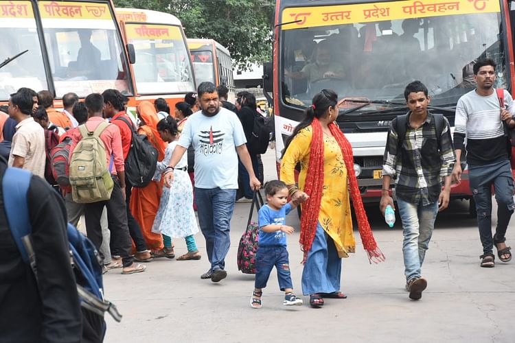 लखनऊ के बस स्टेशनों पर उमड़ी भारी भीड़।
