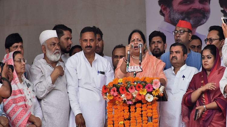 इस बीच सपा-कांग्रेस गठबंधन उम्मीदवार रुचि वीरा कुर्सी से उठीं और माइक से कहा कि पुलिस अधिकारी और कर्मचारी उनके कार्यकर्ताओं को जनसभा में आने से रोक रहे हैं। जो लोग मैदान में आ गए हैं, उन्हें भगा रहे हैं। शहर के बाहर ही बसें रोकी जा रही हैं। उन्होंने कहा कि पुलिस अधिकारी और कर्मचारी अपनी औकात में रहें। भाजपा के लिए काम करना बंद कर दें। दूसरे नेताओं ने भी उनकी इस बात का समर्थन किया।