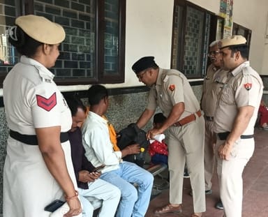 रेलवे स्टेशन पर सामान की चेकिंग करते जीआरपी पुलिस। (सांकेतिक)