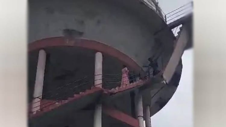 यूपी के सीतापुर में कांशीराम कॉलोनी में रविवार शाम उस समय अफरा-तफरी मच गई, जब एक युवक शराब के नशे में अपने मासूम बेटे को पीठ पर बांधकर पानी की टंकी पर चढ़ गया।