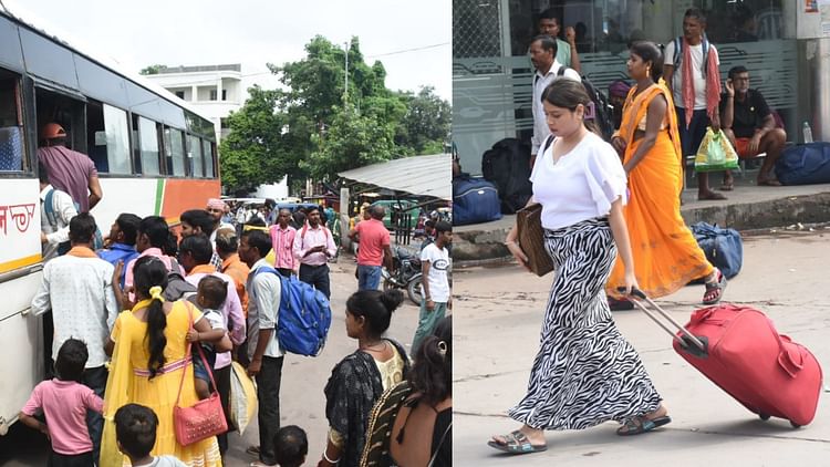 बस स्टेशनों पर लगी भीड़।