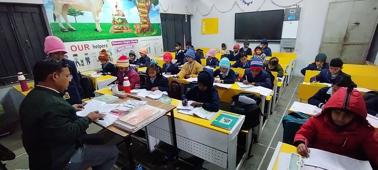 प्राइमरी स्कूल के विद्यार्थी।