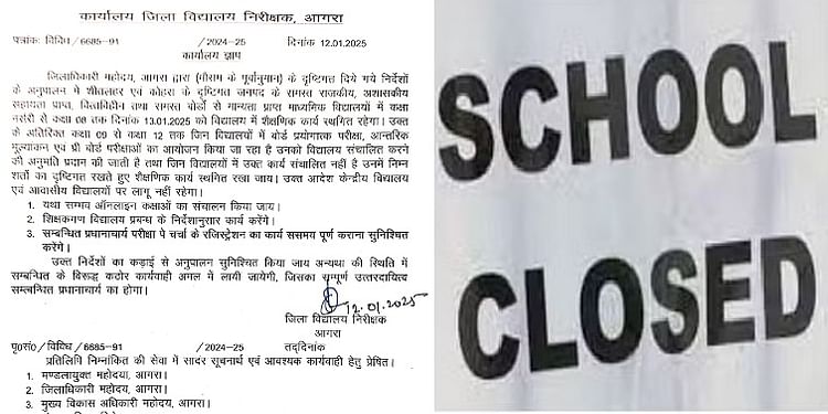 UP School closed: शीत लहर और ठंड के प्रकोप को देखते हुए जिलाधिकारी ने एक बार फिर स्कूलों का अवकाश बढ़ाया है। 12वीं तक के सभी स्कूलों में अवकाश बढ़ा दिया गया है। अब सीबीएसई, आईसीएसई, माध्यमिक और सभी सरकारी व निजी विद्यालय 15 जनवरी को खुलेंगे। इसके साथ ही कहा गया है कि स्कूल अपने अनुसार ऑनलाइन कक्षाएं संचालित कर सकेंगे। वहीं शिक्षक स्कूल प्रबंधन के निर्देशानुसार कार्य कर सकेंगे।