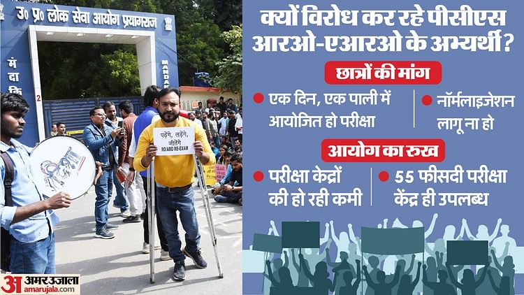 UPPSC Protest: यूपीपीएससी पीसीएस और आरओ-एआरओ प्रारंभिक परीक्षा दो दिन कराने के विरोध में आज छात्रों के द्वारा विरोध प्रदर्शन किया गया। बड़ी संख्या में अभ्यर्थी यूपी लोक सेवा आयोग का घेराव कर रहे हैं। प्रदर्शन अभी भी जारी है, अभ्यर्थी मानने को तैयार नही हैं। अभ्यर्थियों ने आयोग के सामने “एक दिन, एक शिफ्ट, नॉर्मलाइजेशन नहीं” की मांग रखी है।