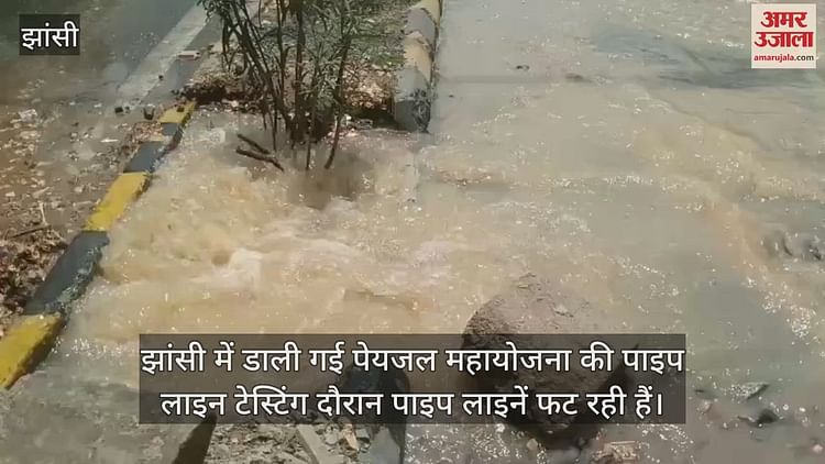 झांसी में डाली गई पेयजल महायोजना की पाइप लाइन टेस्टिंग दौरान पाइप लाइनें फट रही हैं। कल शाम इलाइट चौराहे पर पाइप लाइन फटी थी उससे पूर्व बस स्टैंड पर, आज दिन में आयुर्वेद कॉलेज के समाने पाइप लाइन फट गई जिसका सैकड़ों लीटर पानी सड़क पर बह रहा है।