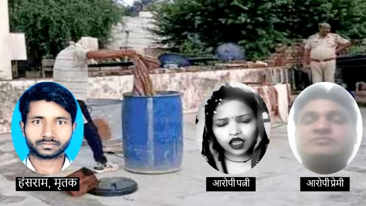 शाहजहांपुर के खुटार थाना क्षेत्र के गांव नवदिया नवाजपुर निवासी हंसराम उर्फ सूरज की हत्या उसकी पत्नी लक्ष्मी ने अपने प्रेमी जितेंद्र के साथ मिलकर की थी। 16 अगस्त को गला काटकर हत्या करने के बाद शव को नीले ड्रम में छिपा दिया था। शव गलाने के लिए आरोपियों ने नमक भी डाला। वारदात के बाद आरोपी जितेंद्र और लक्ष्मी लापता थे। उन्हें पुलिस ने सोमवार को राजस्थान में अलवर के रामगढ़ में ईंट-भट्ठे से पकड़ लिया। हंसराम खैरथल-तिजारा जिले में ईंट-भट्ठे पर काम करता था। वहां किराये के मकान में पत्नी बच्चों संग रहता था। हंसराम की हत्या से उसके गांव के लोग स्तब्ध हैं। परिजनों का रो-रोकर बुरा हाल है।