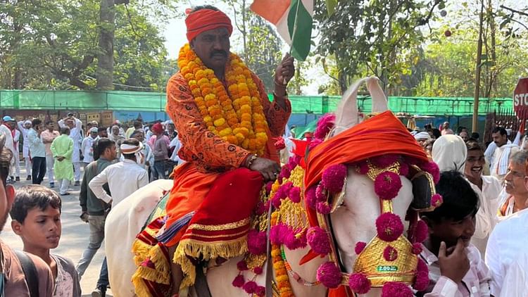 चंदौली से विनोद कुमार यादव घोड़ी पर बैठकर नामांकन करने पहुंचे। file pic