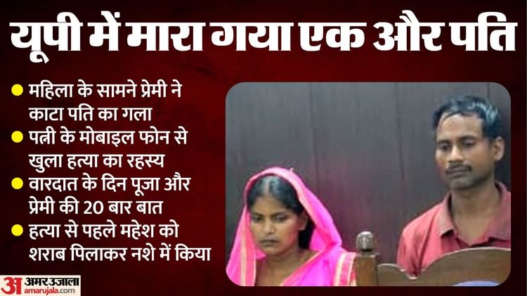 सुल्तानपुर में चांदा के किंदीपुर बाजार स्थित बाग में बुधवार रात युवक की निर्मम तरीके से गला रेतकर की गई हत्या का शुक्रवार को पुलिस ने खुलासा कर दिया। पुलिस के मुताबिक, पत्नी के सामने ही प्रेमी ने उसके पति का गला काटा। पत्नी ने भी अपने पति के सीने पर ईंट से कई वार किए, जिससे उसकी मौत हो गई। आरोपियों की निशानदेही पर पुलिस को वारदात में इस्तेमाल चाकू और ईंट भी मिल गई है।