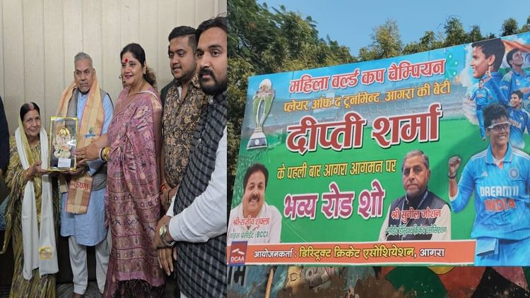 महिला क्रिकेट विश्वकप विजेता टीम की सदस्य दीप्ति शर्मा के आगरा आगमन की तारीख अभी तय नहीं हो सकी है। मगर, खेल प्रेमियों और सामाजिक संगठनों ने दीप्ति के स्वागत को ऐतिहासिक बनाने की रूपरेखा तैयार कर ली है। वह इस दिशा में जुट भी गए हैं। उनका दावा है कि 8 साल पहले के रोड शो से बड़ा जश्न इस बार करेंगे। वहीं दीप्ति के स्वागत के लिए जगह-जगह होर्डिंग्स और बैनर लग गए हैं। मंटोला से लेकर संजय प्लेस, एमजी रोड, शाहगंज और बल्केश्वर तक के मुख्य चौराहों पर होर्डिंग नजर आ रहे हैं।