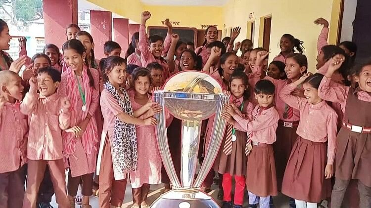 World Cup Final: यूपी में स्कूल के बच्चों ने बनाई वर्ल्डकप की प्रतीकात्मक ट्रॉफी