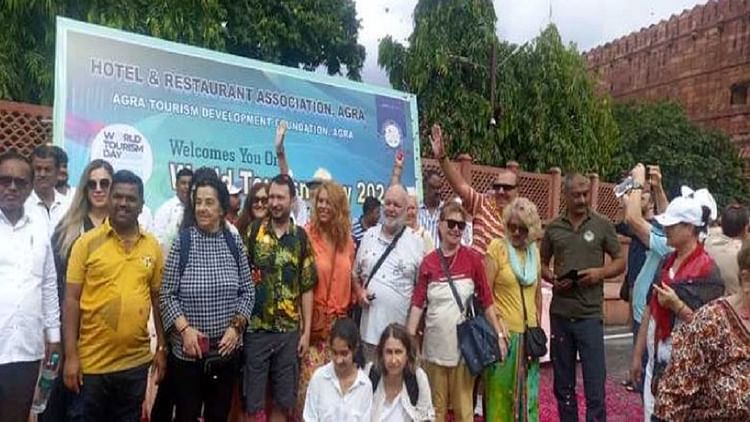 आगरा में विश्व पर्यटन दिवस पर आगरा आए सैलानियों का स्वागत तिलक लगाकर किया गया। आगरा किला पर होटल एसोसिएशन ने सैलानियों पर फूलों की वर्षा की। आगरा की पहचान पेठा खिलाकर मुंह मीठा कराया।