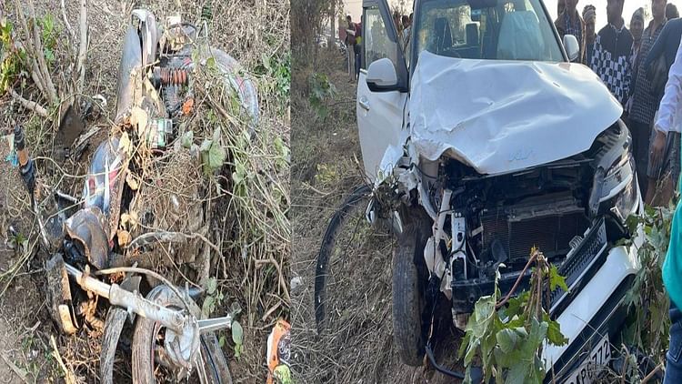 हादसे के बाद क्षतिग्रस्त बाइक व कार