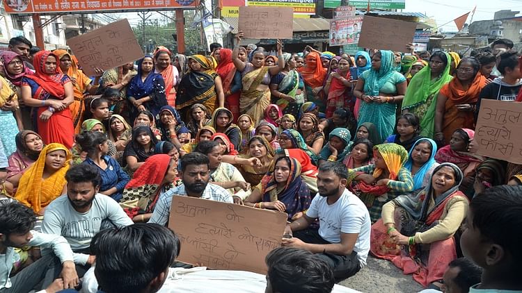 शव रखकर प्रदर्शन करते परिजन और अन्य
